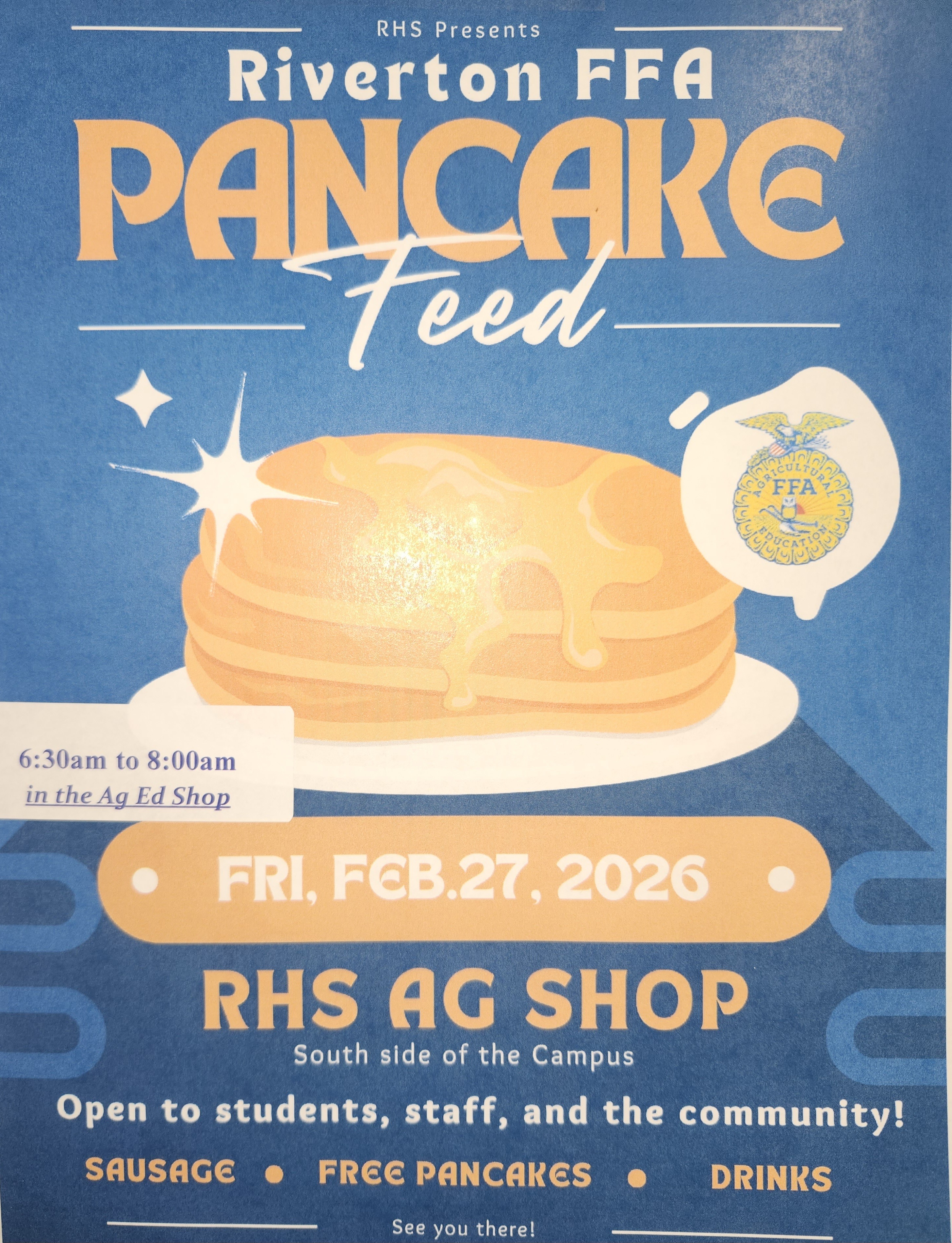 The FFA would like to invite you to our FFA Week Pancake Feed, scheduled to take place on Friday morning, Feb 27, in the Ag Ed Building. We'll be serving pancakes, sausage, coffee, milk, and juice ...
