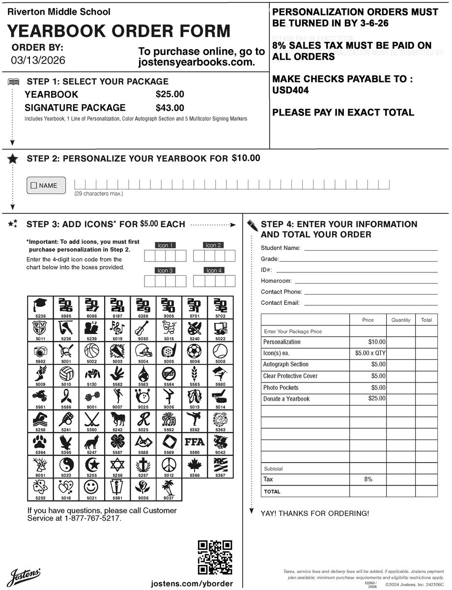 The final deadline to order your 2026 Yearbook is quickly approaching!Orders with personalization must be submitted by March 6.All other orders must be submitted by March 13.You can order online at...